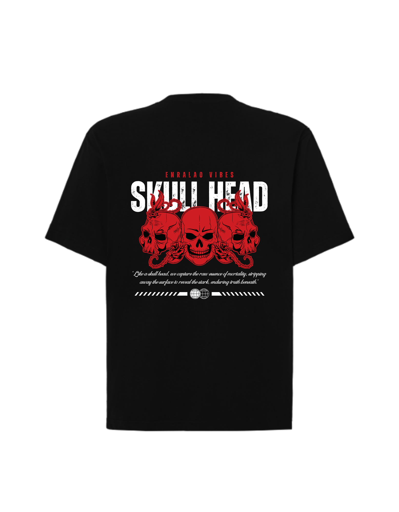 Oscura, potente y con una energía infernal. La Skull Head Tee presenta el logo Enralao Vibes en el frontal y, en la espalda, un trío de calaveras rojas con cuernos que representan poder, caos y libertad. Un diseño que combina el arte gráfico con estética metalcore, perfecto para los que viven con actitud rebelde y no le temen a la oscuridad. Edición limitada. Exclusiva para Halloween.
